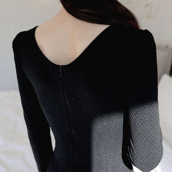 フェミニンなシルエットが魅力のこのミニワンピースは、どんなシーンでも一目置かれること間違いなし。デコルテが美しく開き、女性らしいスタイルを演出してくれます。